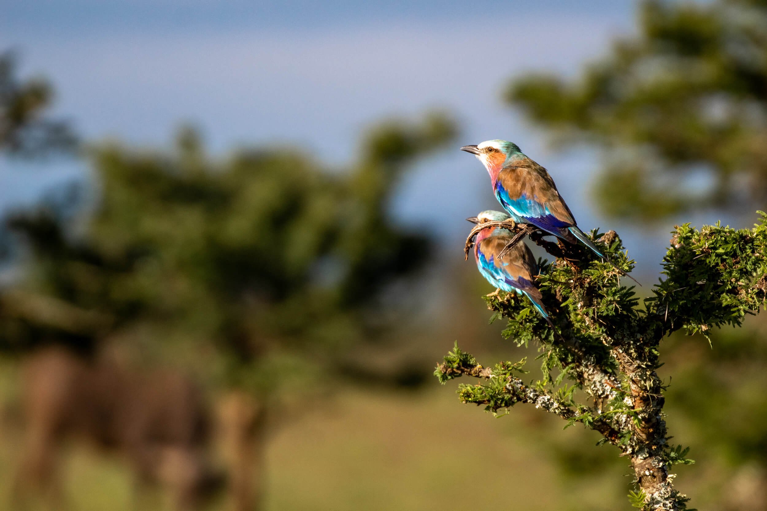Ol Pejeta’s varied ecosystems create ideal conditions for both resident and migratory bird species. The vast open grasslands attract raptors and ground birds, while rivers and acacia woodland areas support a multitude of songbirds, waterbirds and forest species including rarer species like the Abyssinian scimitarbill and Blue-naped mousebird.